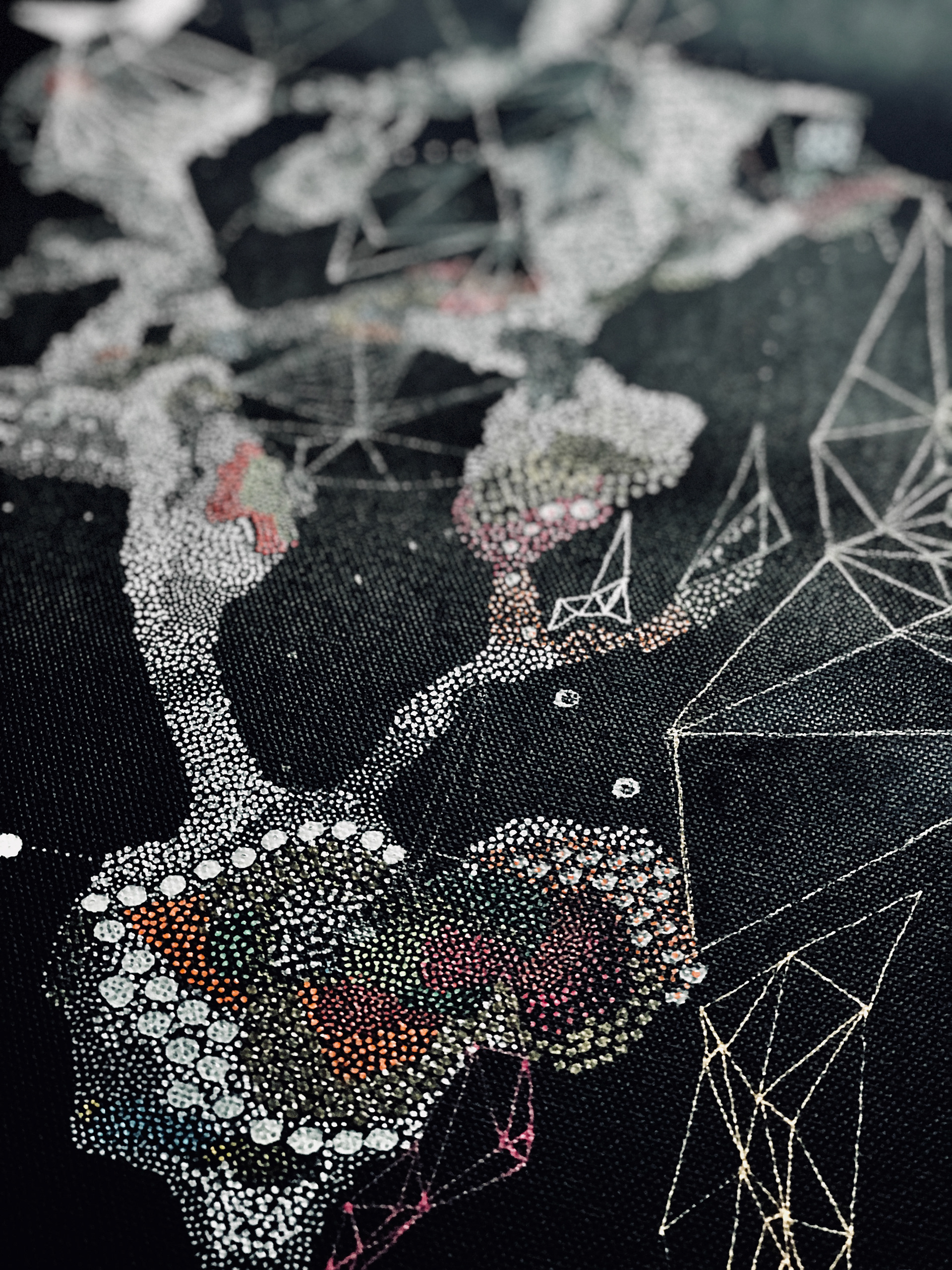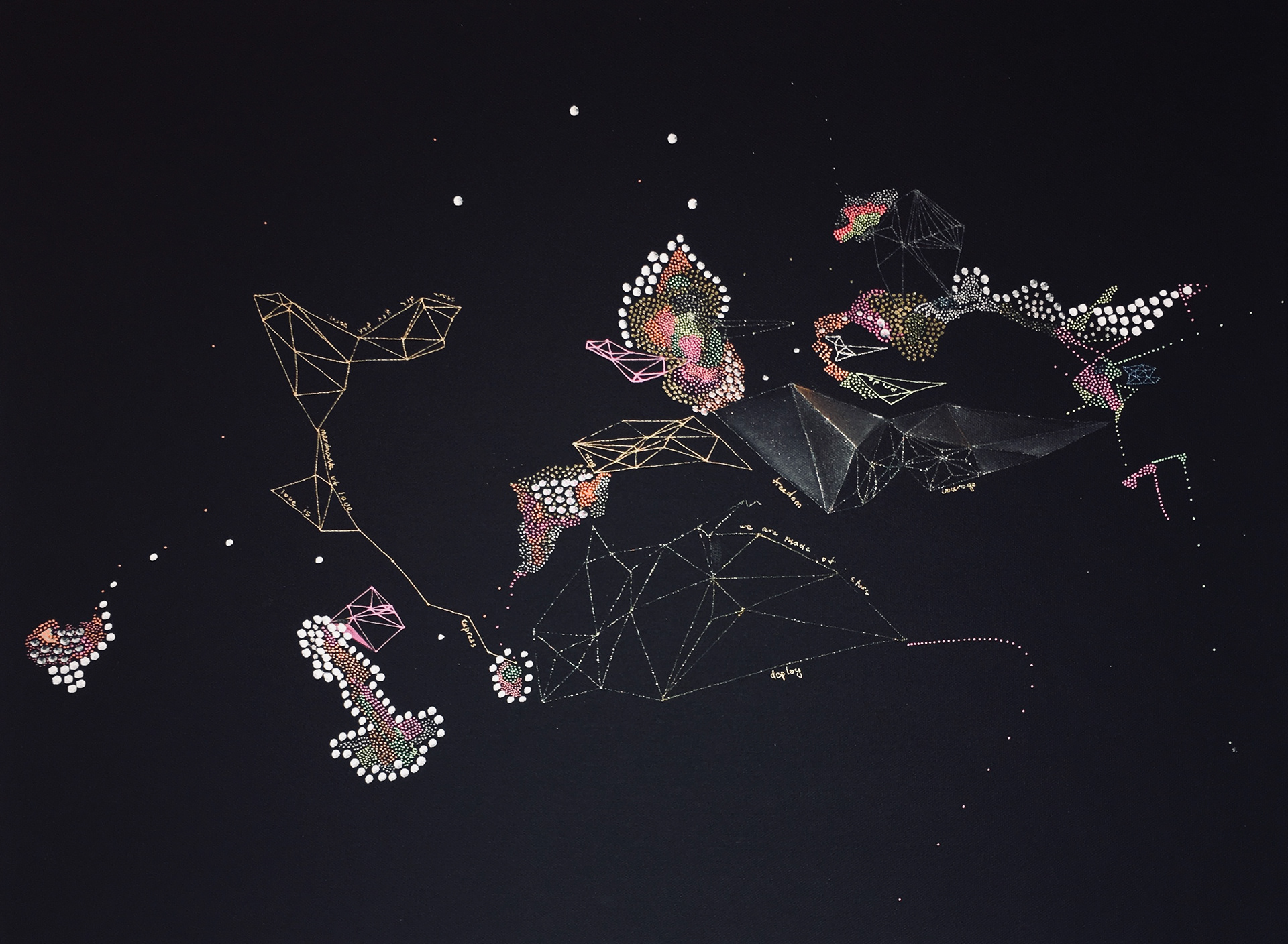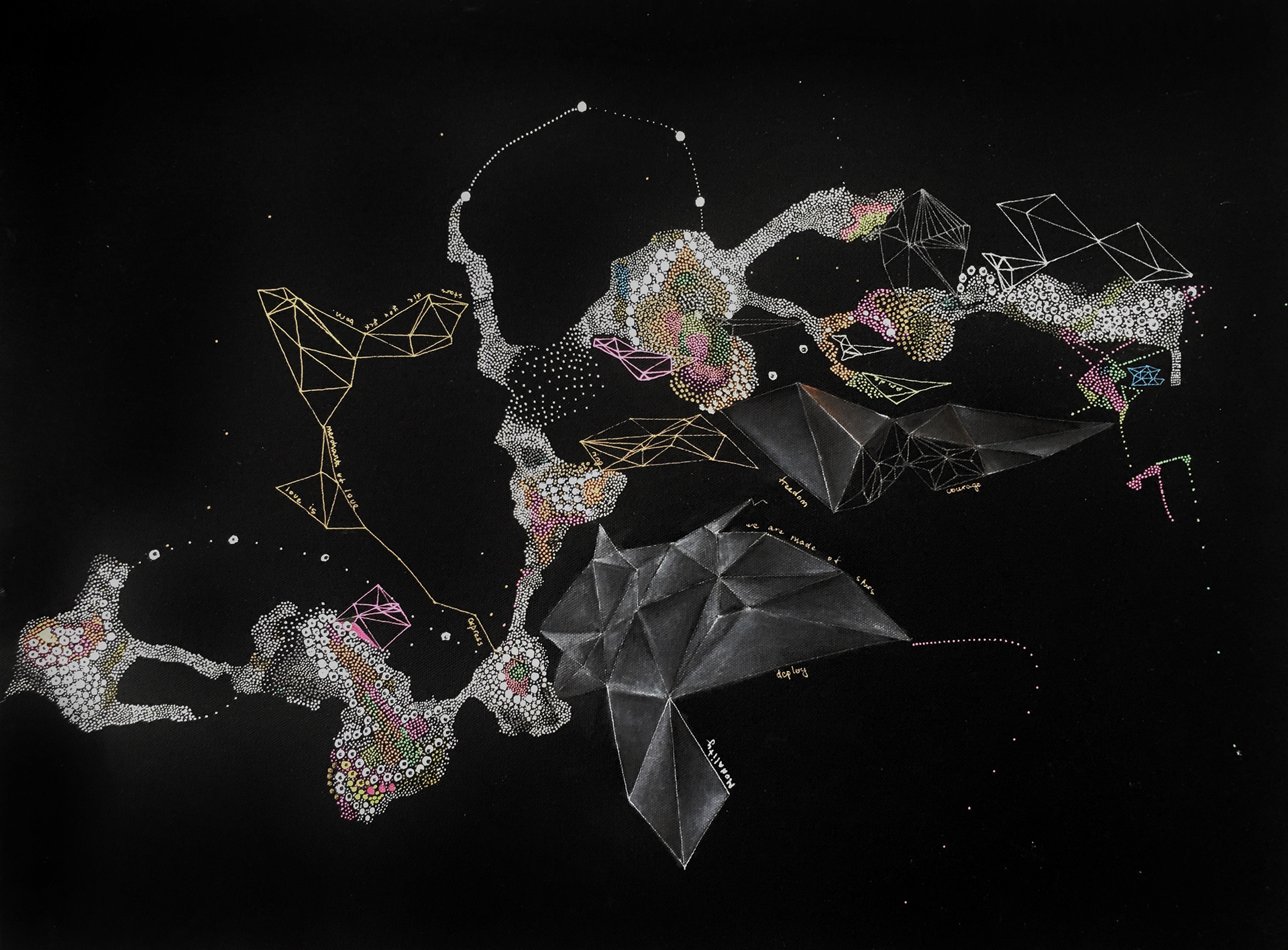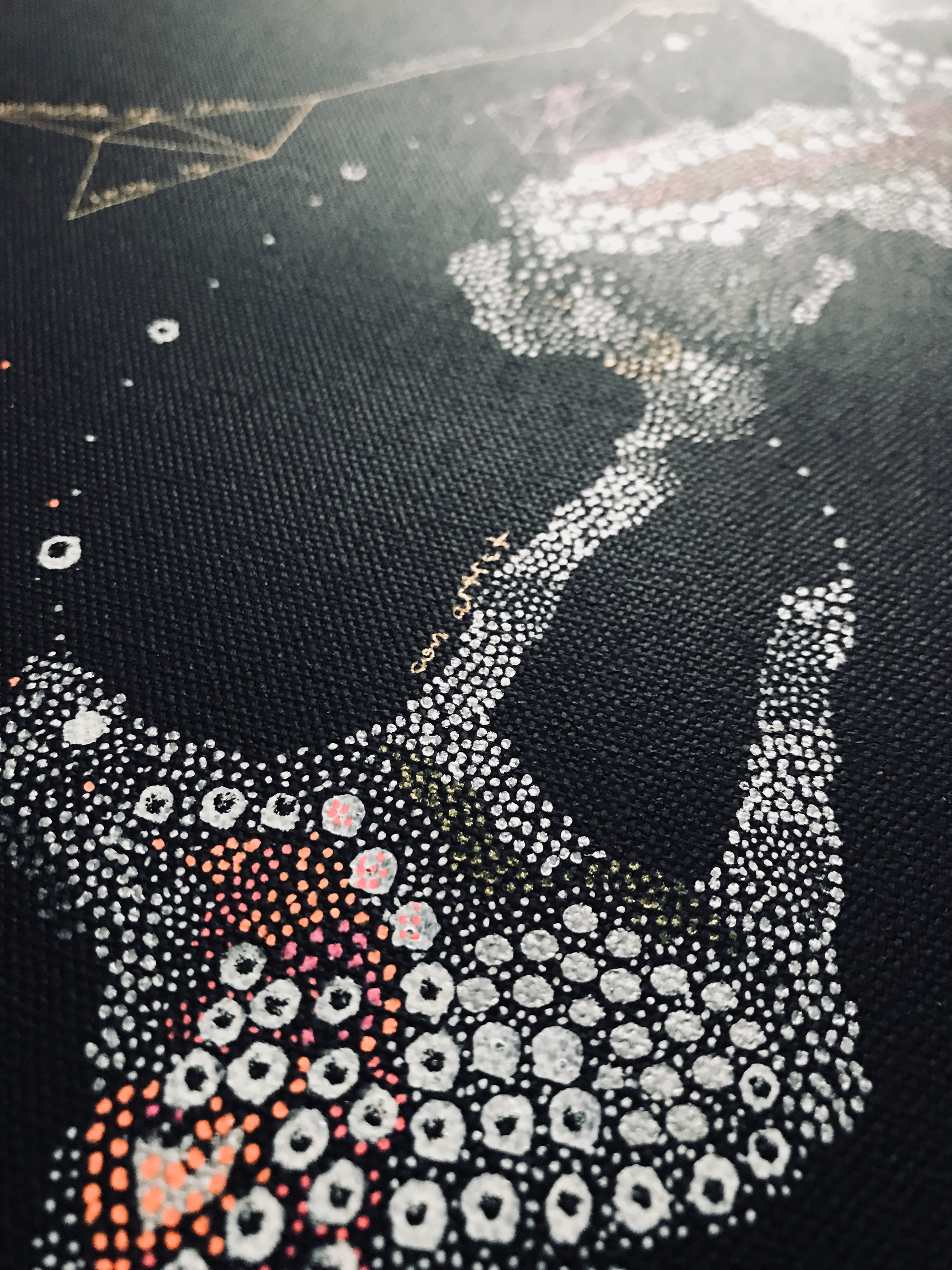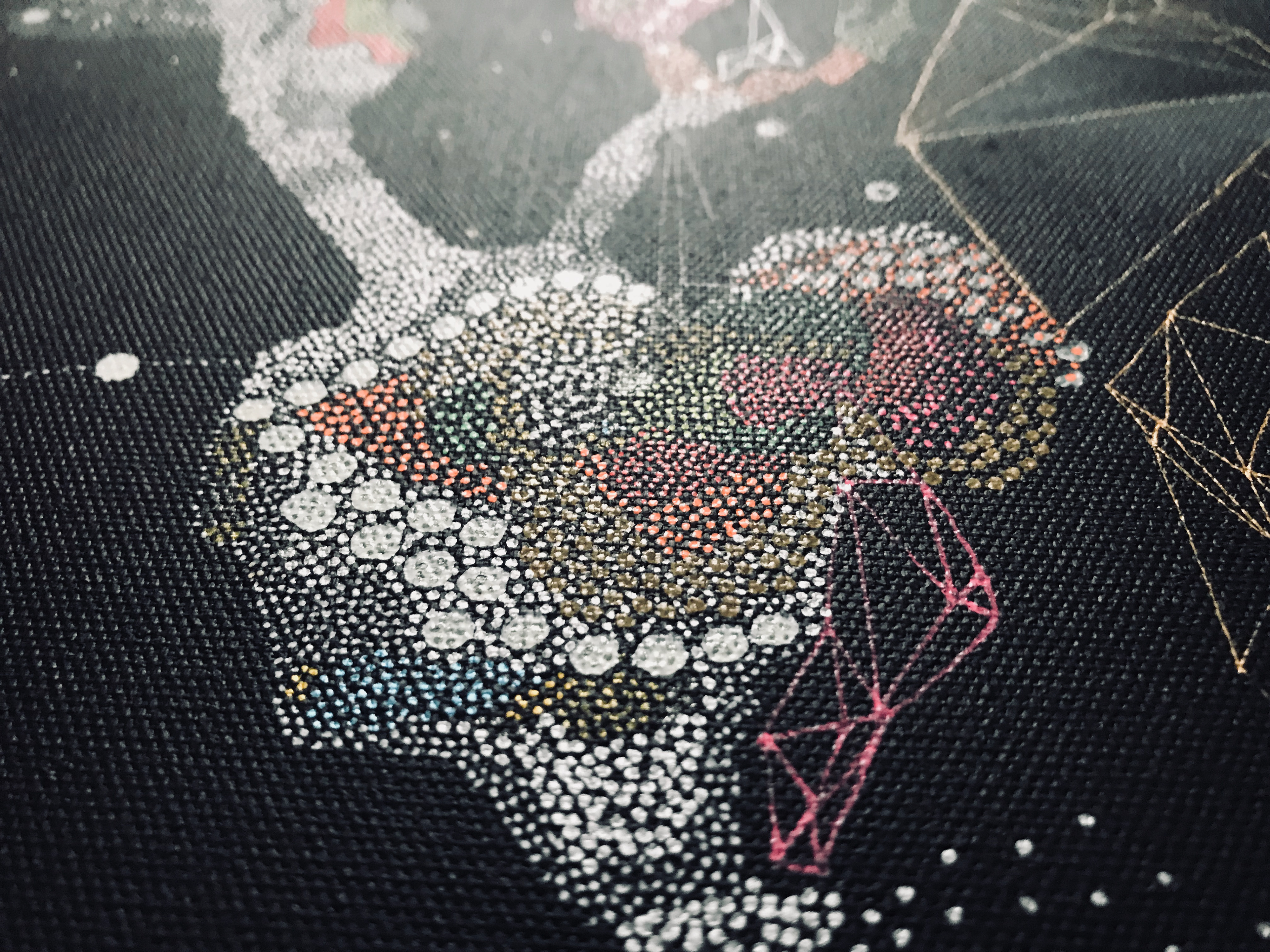 Size: 18 x 24 x 0.5 in Medium: pen, marker, pastel, acrylics on canvas Type: Drawing Subject Matter: Abstract Creation Date: c. March 2016